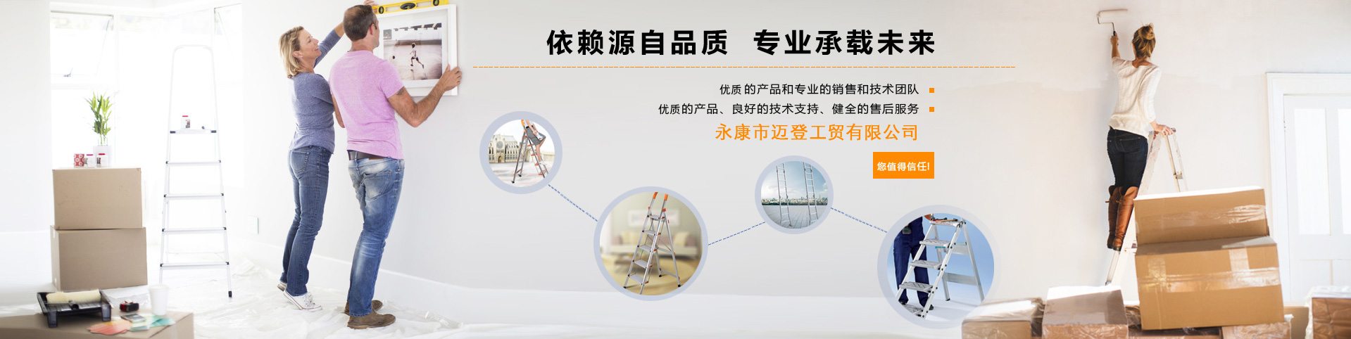 永康市邁登工貿(mào)有限公司,位于浙江省永康市---五金之鄉(xiāng),地理位置優(yōu)越,交通便利。我司是一家專(zhuān)業(yè)梯具制造企業(yè),目前以生產(chǎn)各類(lèi)鋁合金梯子為主,集設(shè)計(jì)、研發(fā)、制作、銷(xiāo)售為一體。公司產(chǎn)品種類(lèi)涵蓋豐富,包括家用梯、多功能梯、工業(yè)用梯、工作臺(tái)、竹節(jié)梯、單直梯等,為家居清潔、裝飾以及工程裝飾提供專(zhuān)業(yè)優(yōu)質(zhì)的配套服務(wù)。我司以國(guó)際化先進(jìn)技術(shù)為標(biāo)準(zhǔn),秉承“誠(chéng)信為本、合作互贏(yíng)”的企業(yè)宗旨,專(zhuān)注于提高產(chǎn)品品質(zhì)以及服務(wù),積極優(yōu)化改進(jìn)產(chǎn)品結(jié)構(gòu), 提高產(chǎn)品技術(shù)水平。 未來(lái)邁登將繼續(xù)秉持“質(zhì)量為上,求實(shí)創(chuàng)新”的企業(yè)精神,致力于打造更多更精的新產(chǎn)品,努力走穩(wěn)每一步,為打造企業(yè)品牌而努力奮斗!